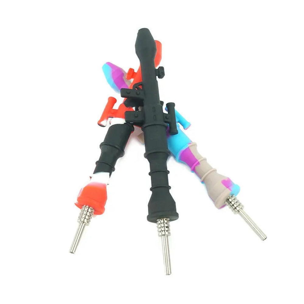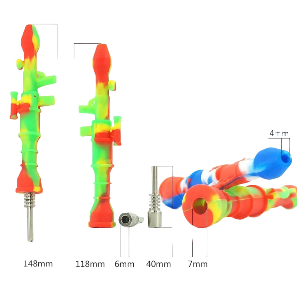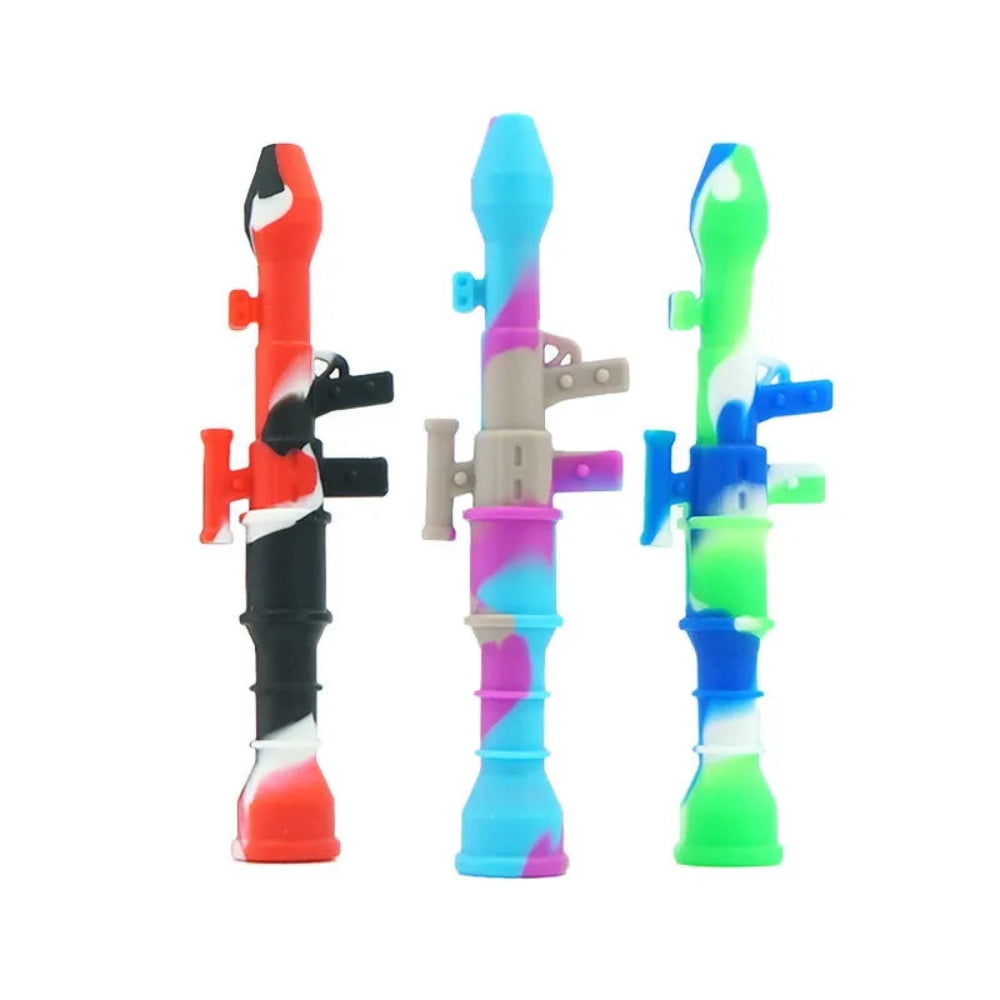 ¡Haz de tu experiencia algo único con nuestra Pipa de Silicona para Rosin con Diseño Bazuca Multicolor! (se envía al azar según stock)