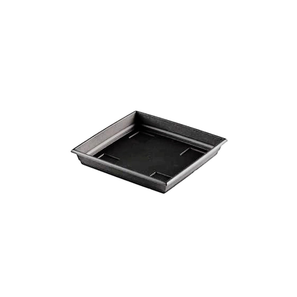 Producto para macetas cuadradas bastante resistente, fabricado con plástico negro.