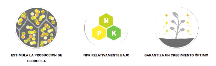 - Aporta mucha energía las plantas al tener una fórmula muy asimilable por ellas.