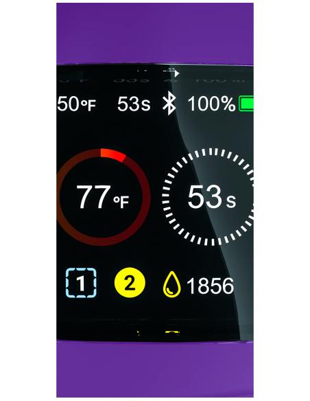 - Pantalla OLED que indica los niveles de carga de la batería y rangos de temperatura así como el uso completo del equipo.